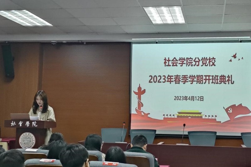其后,分党校活动部负责人费倩倩详细介绍了本期培训班的特色活动。“党建书屋”系列活动以阅读红色书籍为中心内容,通过读书分享、主题朗诵、党建主题辩论赛等形式学习党的理论知识,做到在活动中强思想,在淬炼中强党性,以党的历史滋养初心、引领使命。她认为该活动是落实党史学习教育、赓续红色精神、传承革命事业的重要方式,能够帮助青年学子在常学常新中感悟思想伟力,在真学真信中坚定理想信念。