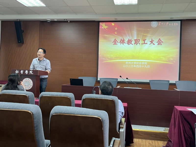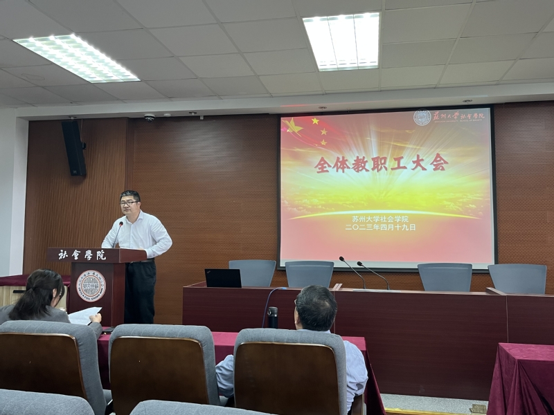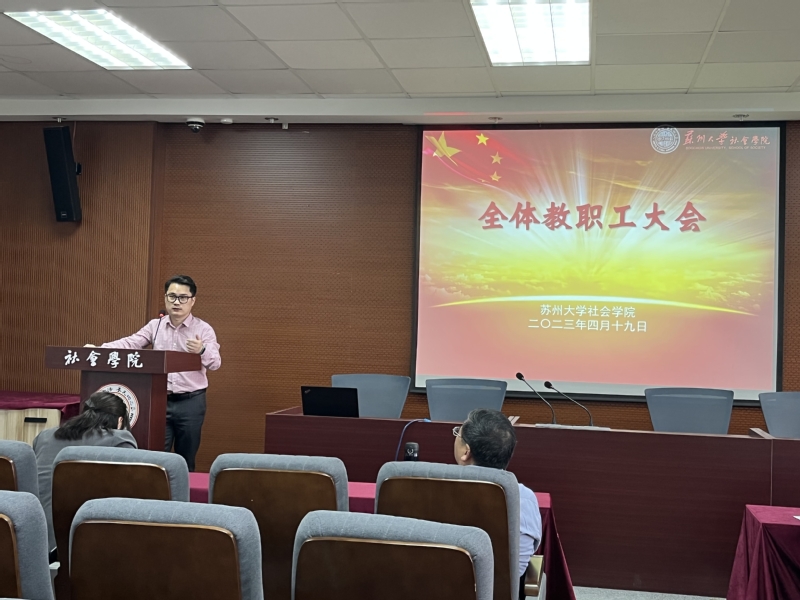 4月19日下午,博彩平台 在院学术报告厅召开全体教职工大会,院长高峰、党委书记邓国林、副院长宋言奇、裔洪根、党委副书记兼副院长朱今出席本次会议,博彩平台全体教职工参加会议,会议由党委书记邓国林主持。